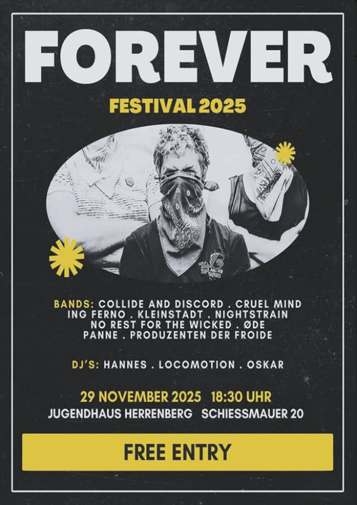 From the shadows of Stuttgart’s underground, NIGHTSTRAIN delivers a sonic punch in the gut. A raw blend of Pop-Punk, Metalcore and post-punk tension. You will face catchy melodies, sharp screams and an awesome show, that’s sure to fulfill your every wish. This is no polished anthem. This is chaos, melody, and defiance carved into noise. So grab your Tickets and get Loud and sweaty with us.