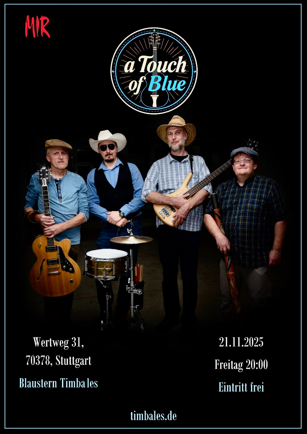 Eintritt frei A Touch Of Blue – Live Blues und Rock Blaustern TimbalesWertweg 31, 70378 Stuttgart-HofenFreitag, 11. November 2025 Beginn: 20:00 Uhr A Touch of Blue Was gibt es…